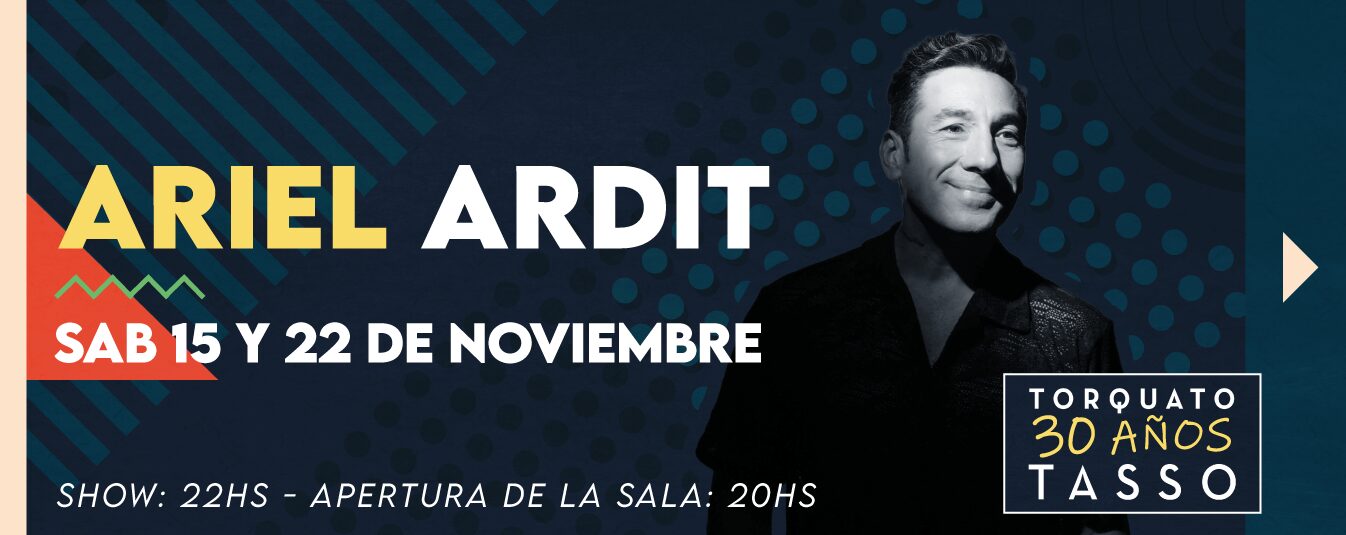 Uno de los grandes cantantes de tango de la actualidad, Ariel Ardit llega al Torquato Tasso con su inconfundible voz y estilo. En un show lleno de pasión y elegancia, interpreta clásicos del repertorio tanguero con la fuerza y el respeto que lo consagran como un referente del género.